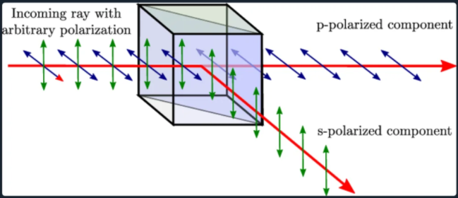偏振分光棱镜(PBS)的原理:基于偏振光的特性。是将一束入射光分成传播方向互相垂直的两束光的光学元件。但与一般的光学分束元件不同,由它分出的两束光之间有特殊的关系,即:它们都是线偏振光,且偏振方向互相垂直。