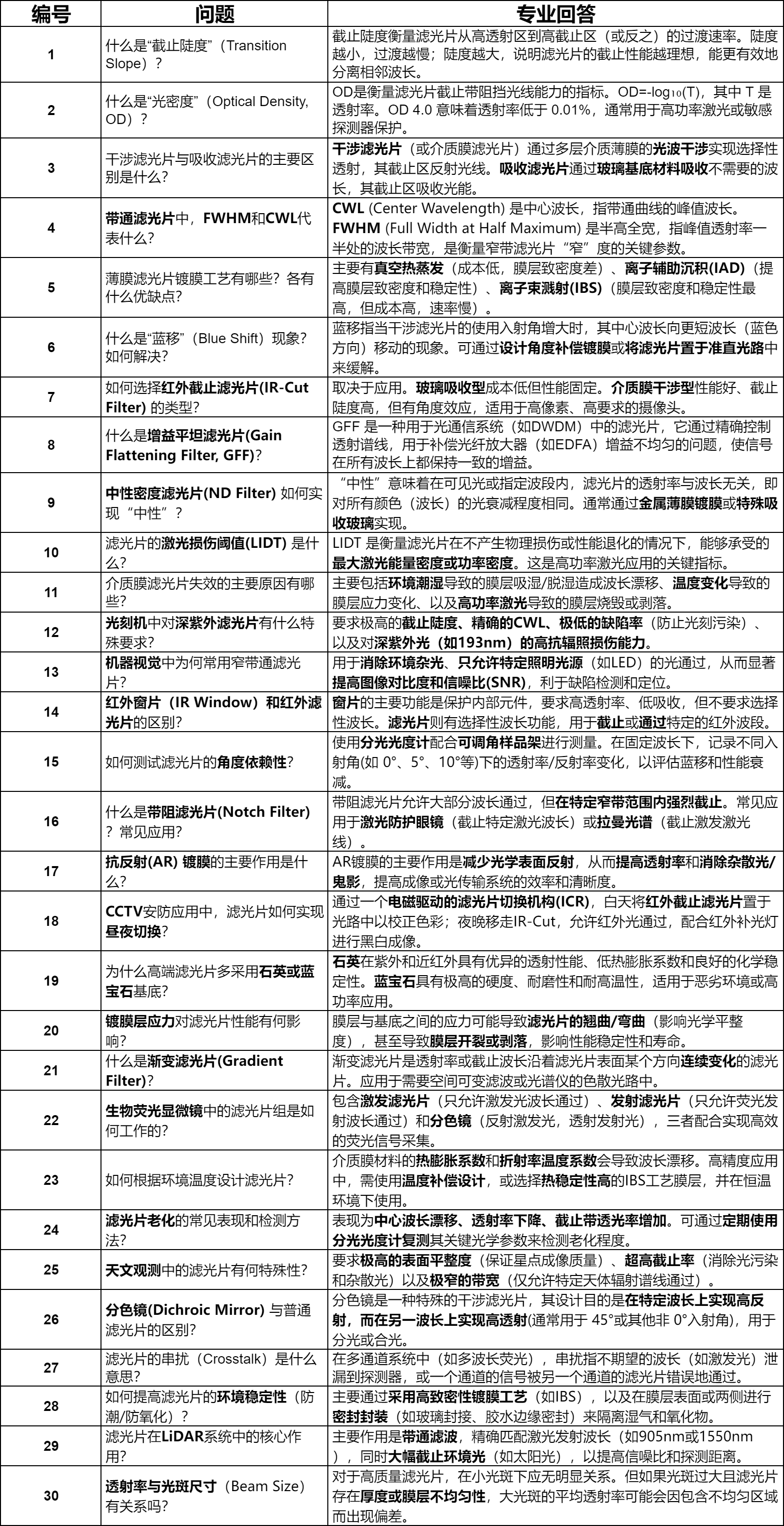于是我们干脆整理出了一份《30个滤光片常见问题解答》。