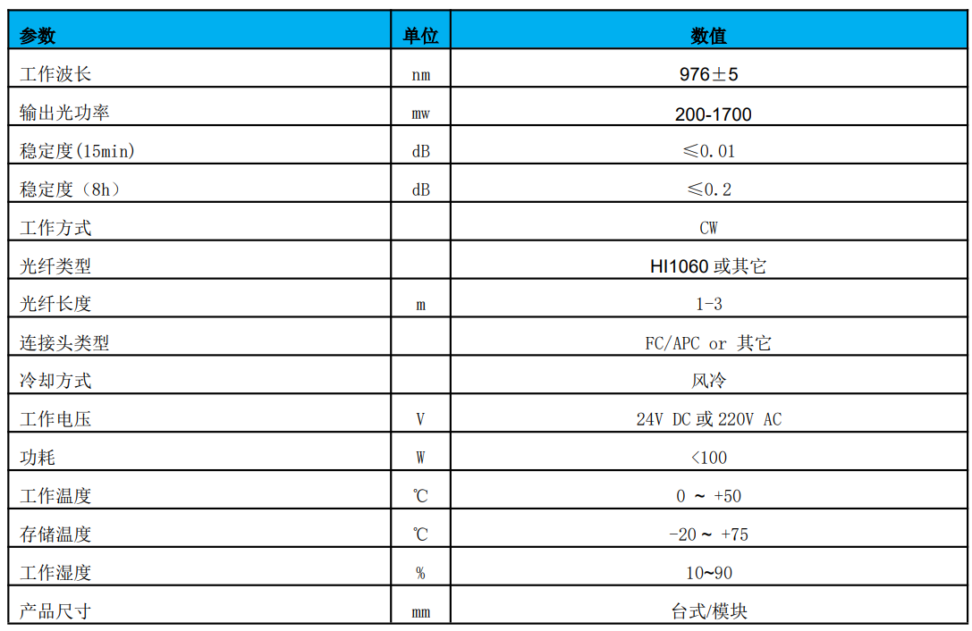 注:1570nm单模泵浦光源,793nm,808nm,915nm,976nm多模泵浦光源,可定制,请咨询。