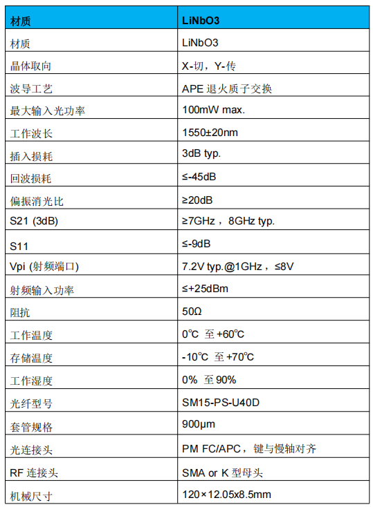 上海京盛光电科技有限公司10GHz相位调制器,是一款高性能的铌酸锂(LiNbO3)相位调制器。该调制器可以低驱动电压在宽工作带宽内提供相位调制。其低插入损耗和高功率处理能力提供了极大传输功率。该调制器使用X切割LiNbO3铌酸锂材料,采用退火质子交换 (APE) 光波导制造,使用保偏(PM)输入和输出光纤,易于与其他光学元件集成。