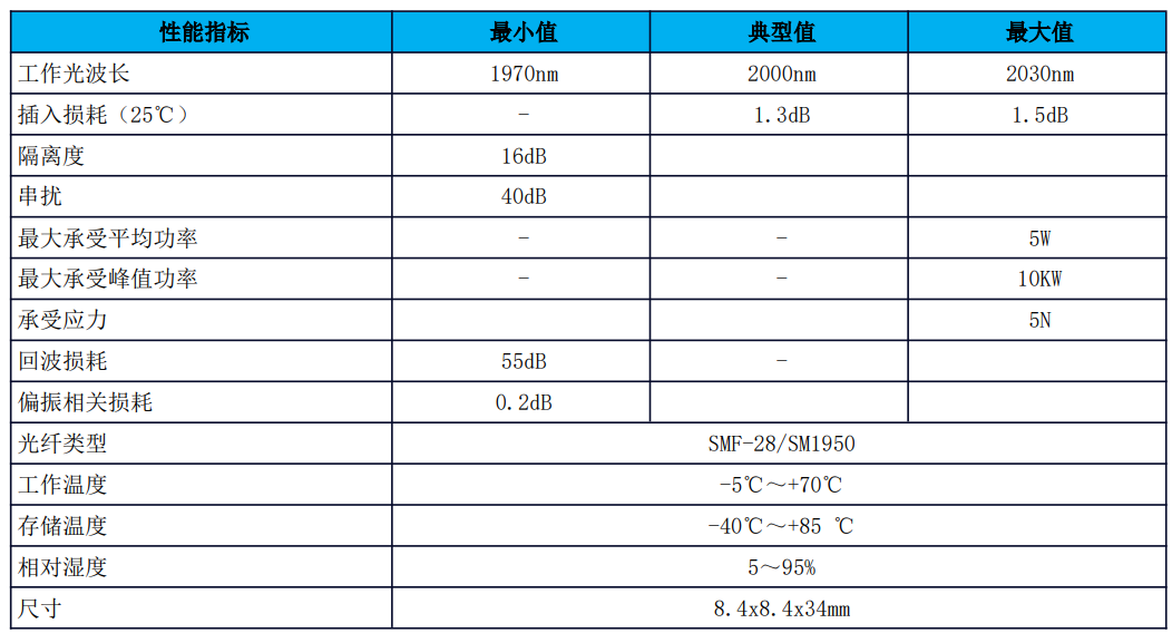 2000nm偏振无关光环行器是一种高性能的光纤无源器件,使光信号从1端口到2端口的导通以及2端口到3端口的导通。