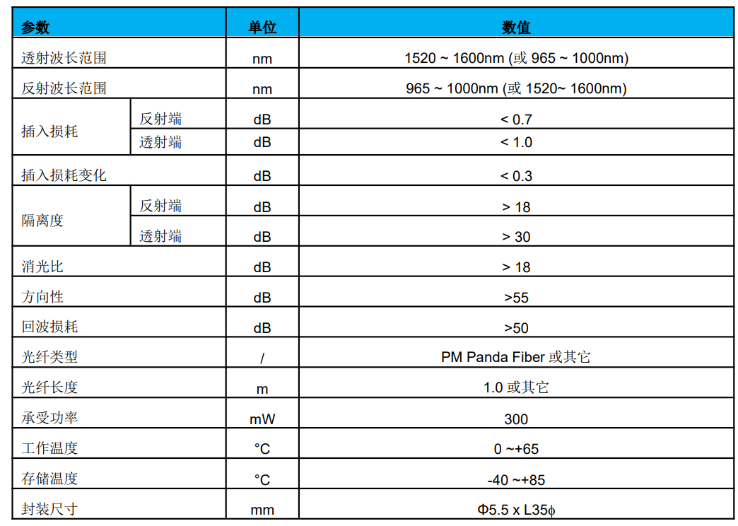 保偏波分复用器是将不同波长的光信号耦合到一根光纤中的器件,最常见的应用是将泵浦光信号与偏振信号光耦合到一根光纤当中,所以,在保偏光纤放大器与保偏光纤激光器中是必不可少的器件。