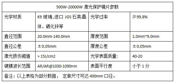 •透光率可高达99.8%,并且可承受高达20000W功率的激光。